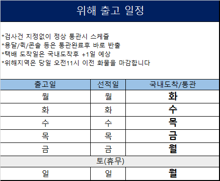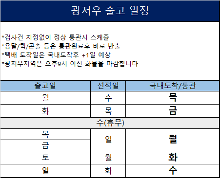 ** 하기 스케줄은 365일 고정된 운항편이나, 기상 악화 및 기타 특수 상황에 따라 1일 정도 지연되는 경우가 발생할 수 있습니다 **